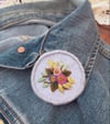 Hand embroidered florals on felt pin badge - Purple