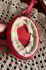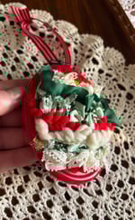 Celebrate the holidays and your love of all things yard, lace, and fabrics! This one of a kind ornament fits in your hand and add a little vintage style to your tree.