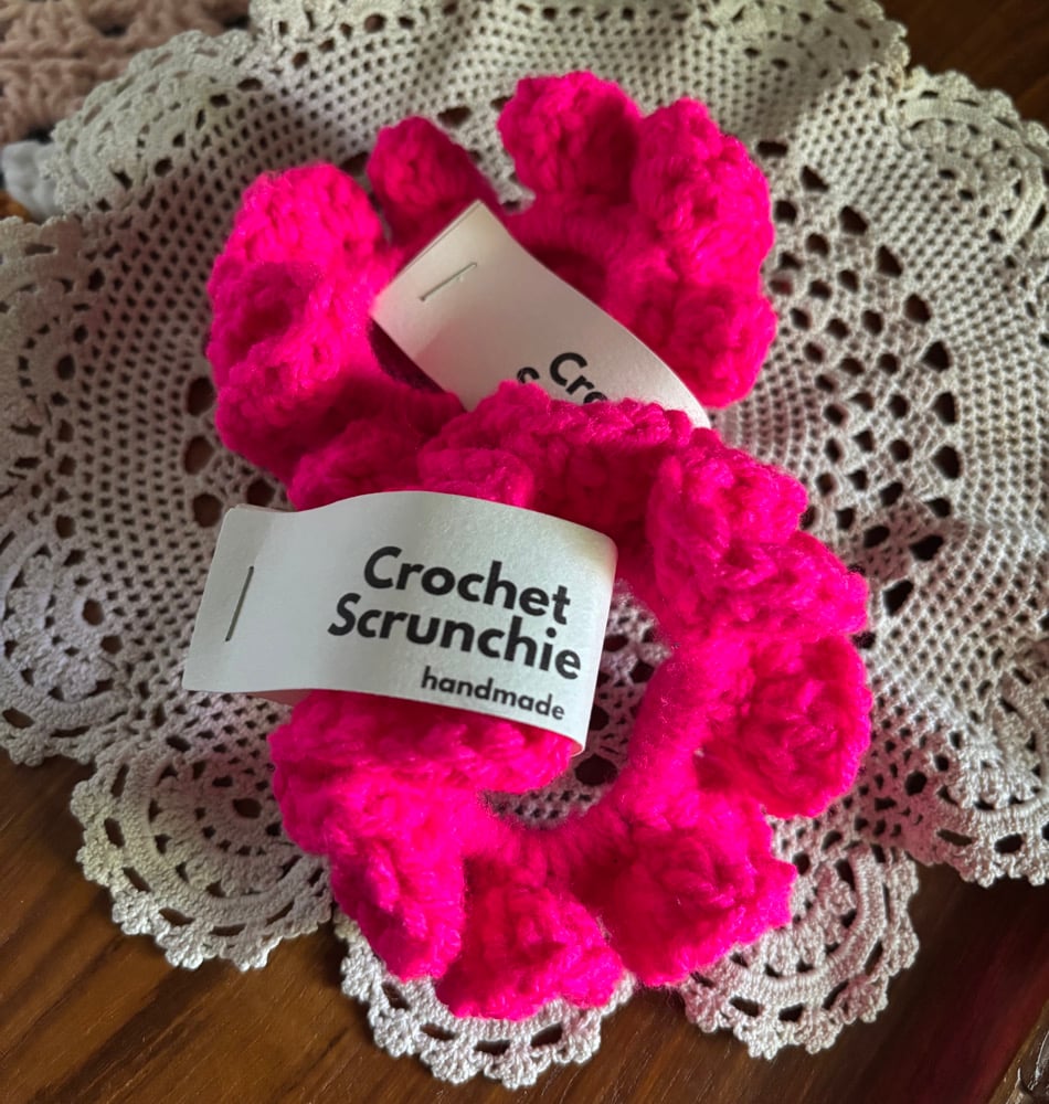 Handmade crochet scrunchie with a standard size no pull elastic in the middle. Each listing is for two scrunchies in the colours shown.