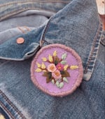 A floral design has been hand stitched on felt with a safety pin secured to the back to attach to any item.